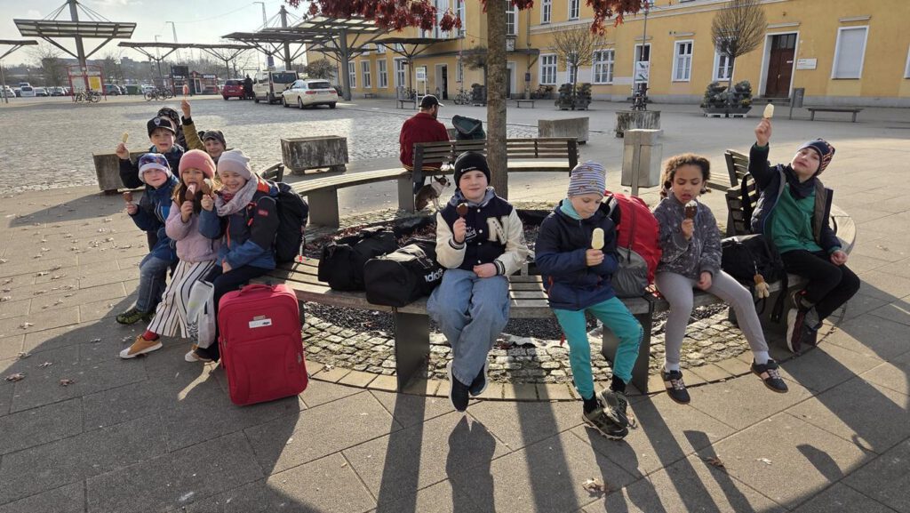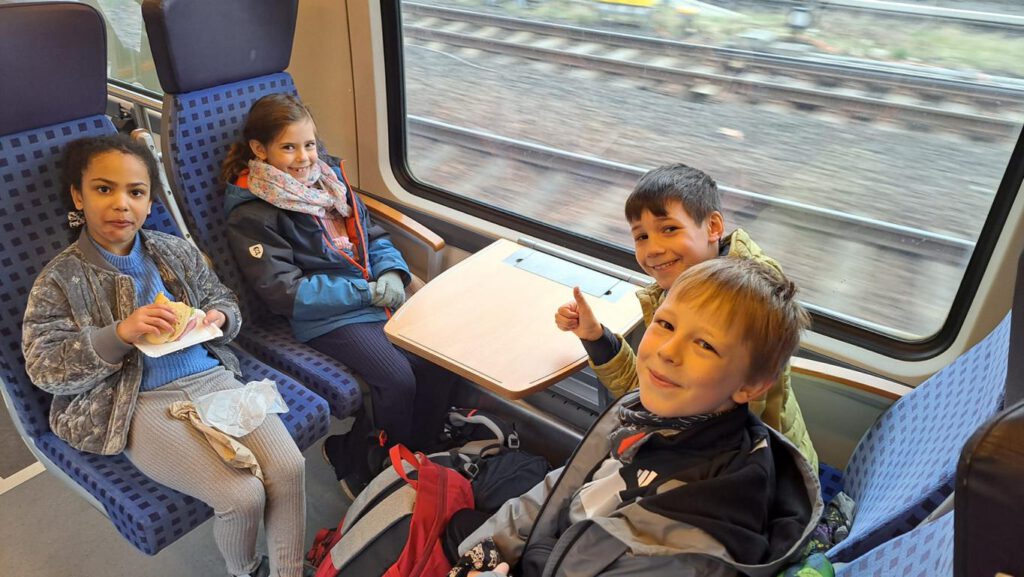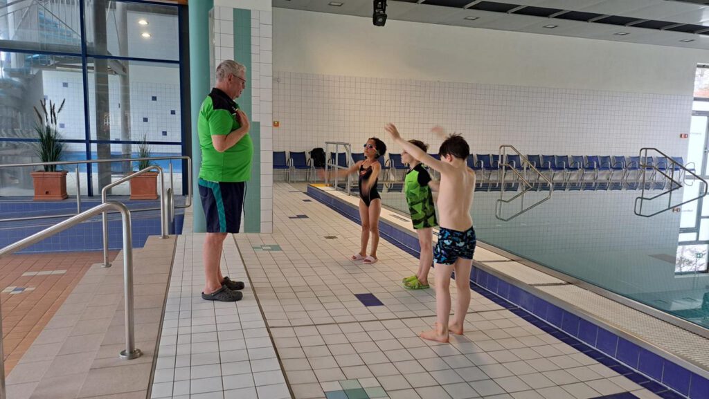 Am 21. März trafen wir (10 Kinder und 3 Erwachsene) uns gegen 7:30 Uhr am Bahnhof Lichtenberg. Ziel: Schwimmhalle in Eberswalde.