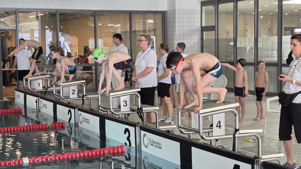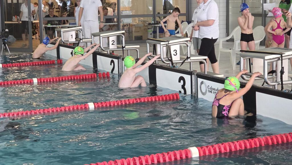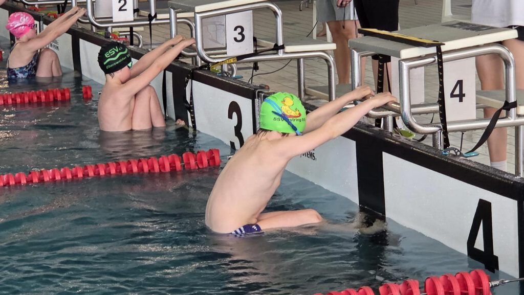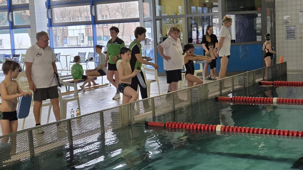 Da wir pünktlich waren, konnten wir uns entspannt umziehen und mit dem Einschwimmen beginnen.